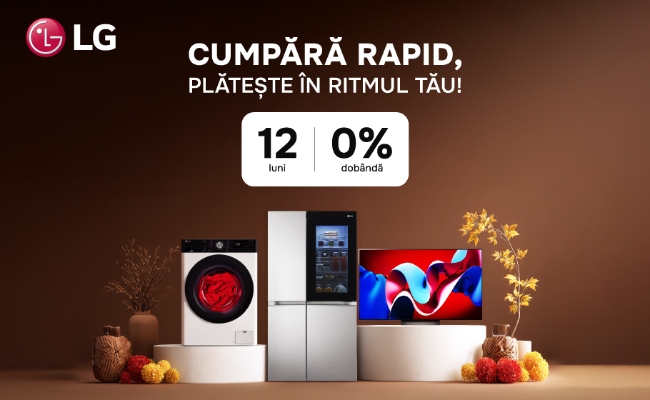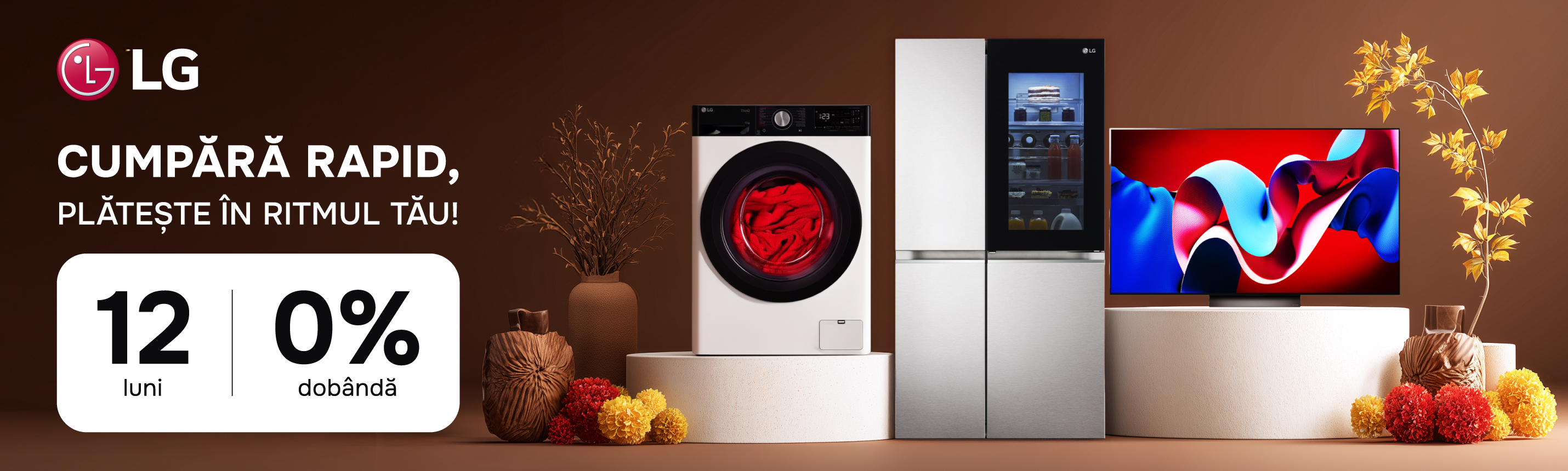 Cumpără electrocasnice LG în rate 12 luni cu 0% dobândă
