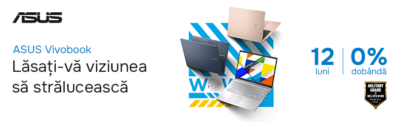 Alege un laptop ASUS Vivobook chiar azi și plătește în rate pe parcursul unui an.