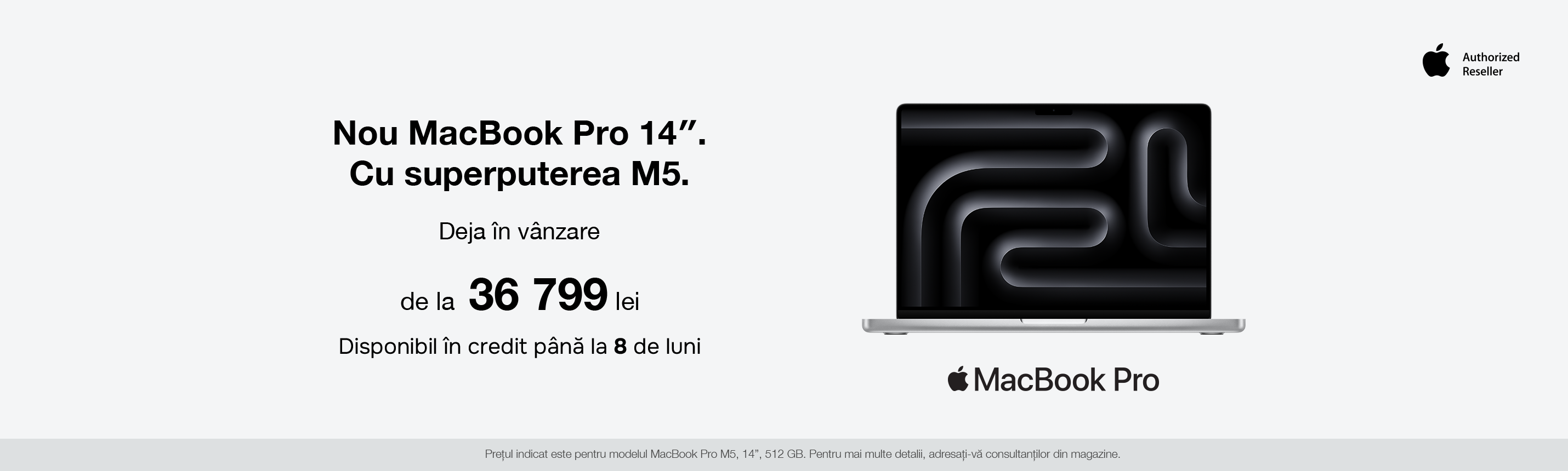 Nou MacBook Pro 14" în rate pe 8 luni cu 0% dobândă