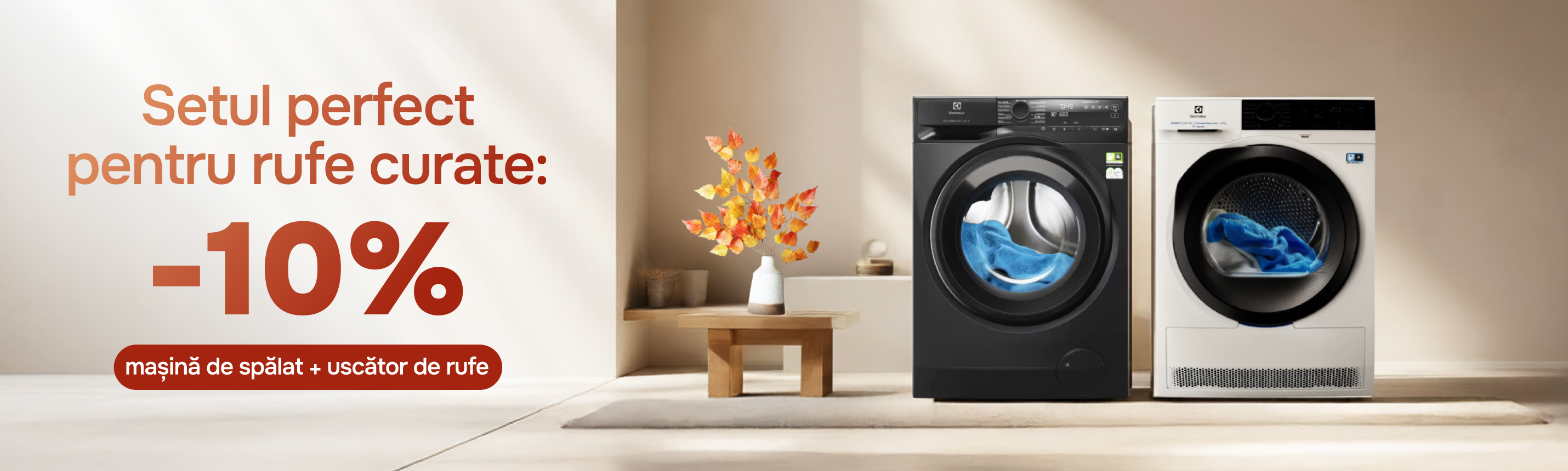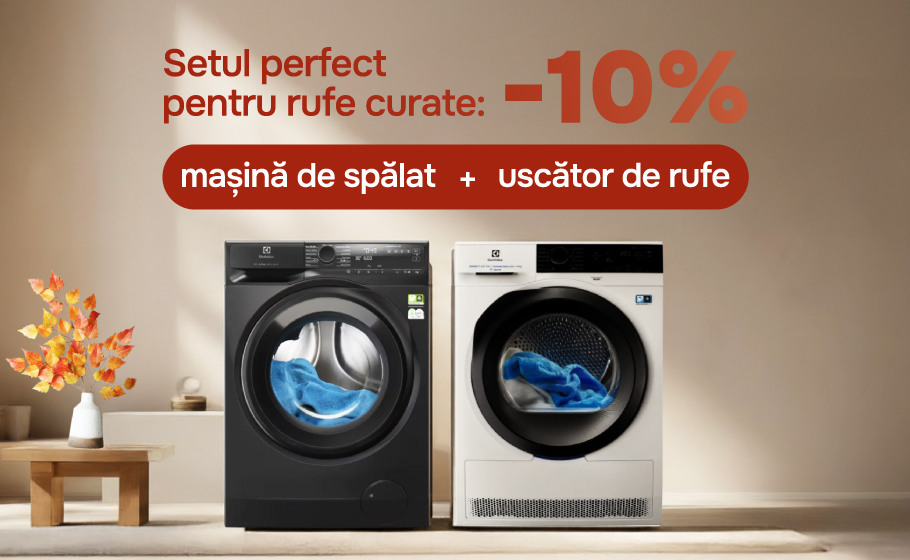 Achiziționează un set de mașină de spălat și uscător de rufe și beneficiază de o reducere -10% la întreaga comandă.