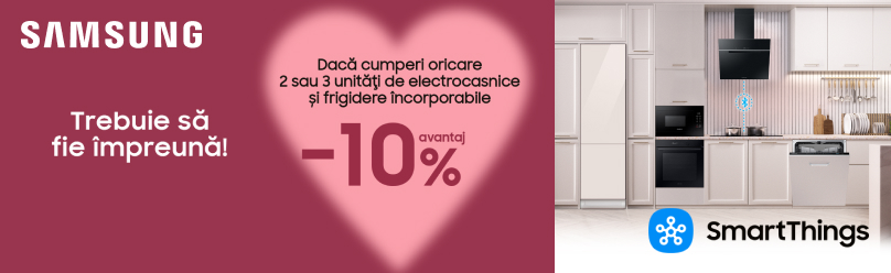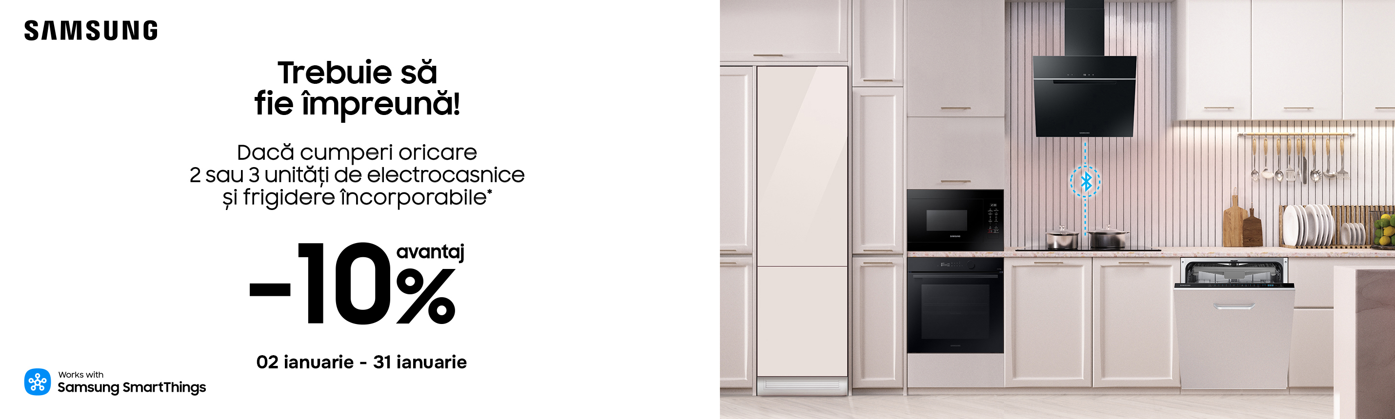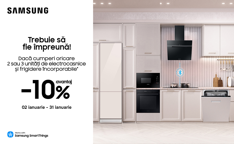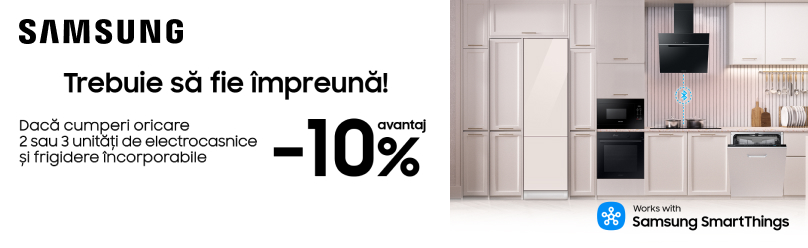Alegeți de la două sau mai multe unități de electrocasnice încorporabile Samsung și beneficiați de o reducere de –10% la întreaga comandă.