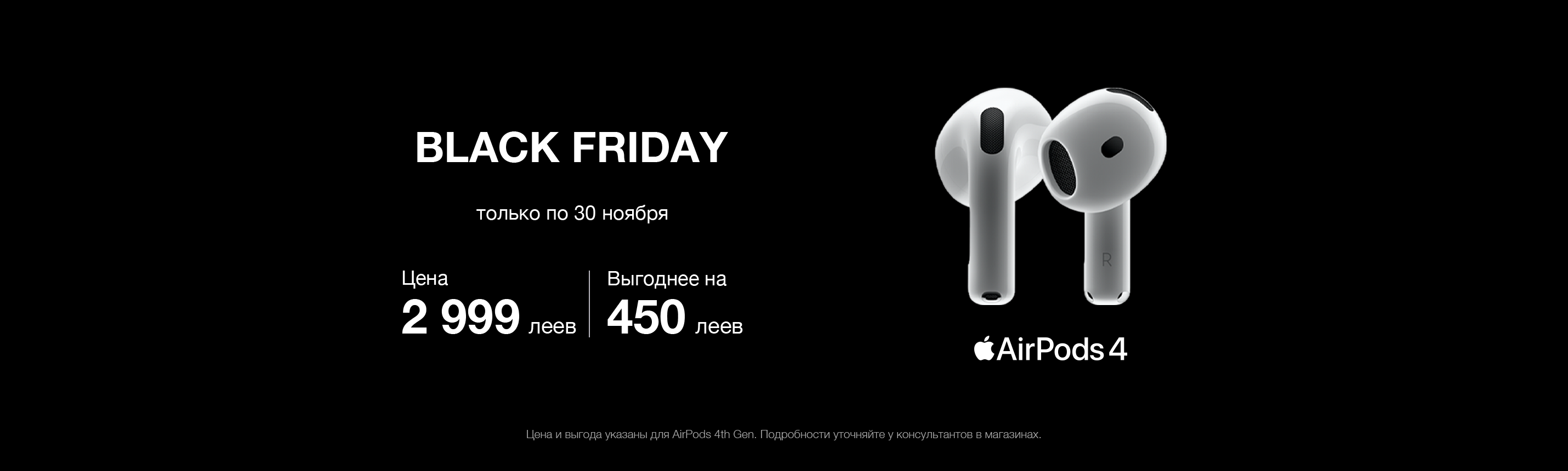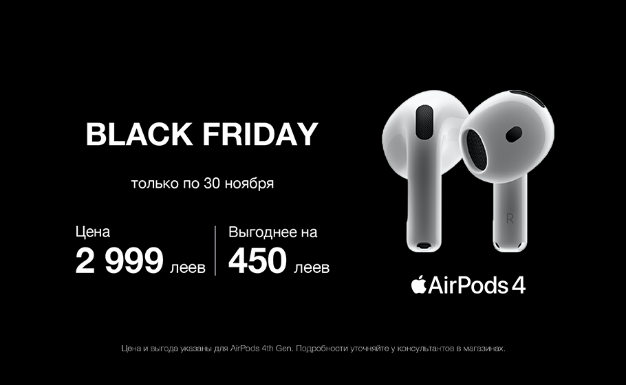 Главная / Акции / Black Friday! AirPods 4 по выгодной цене