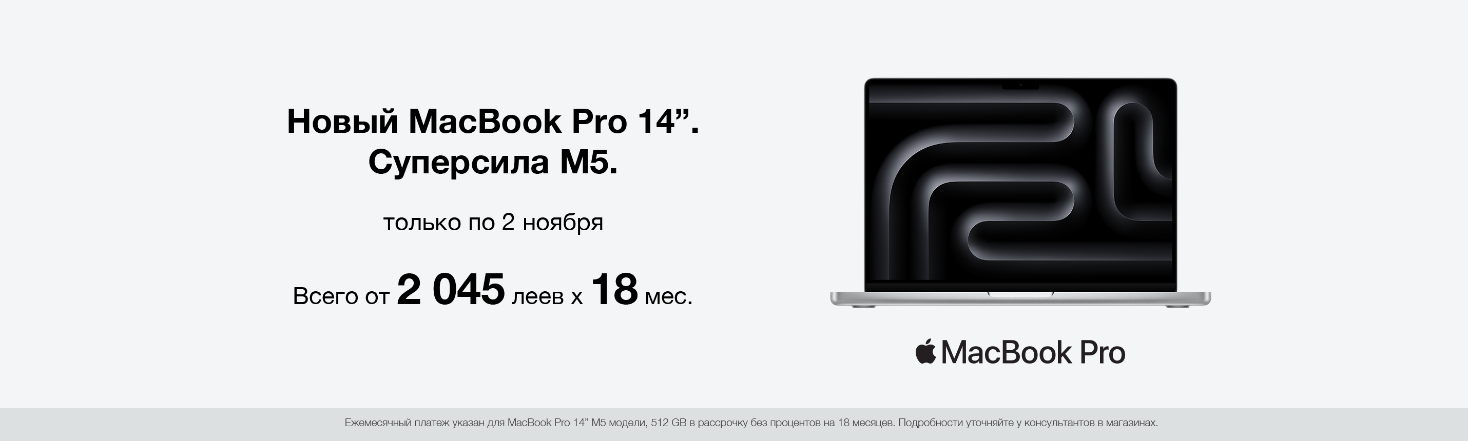 Главная / Акции / Оформи предзаказ на MacBook Pro 14" в рассрочку на 18 месяцев под 0%
