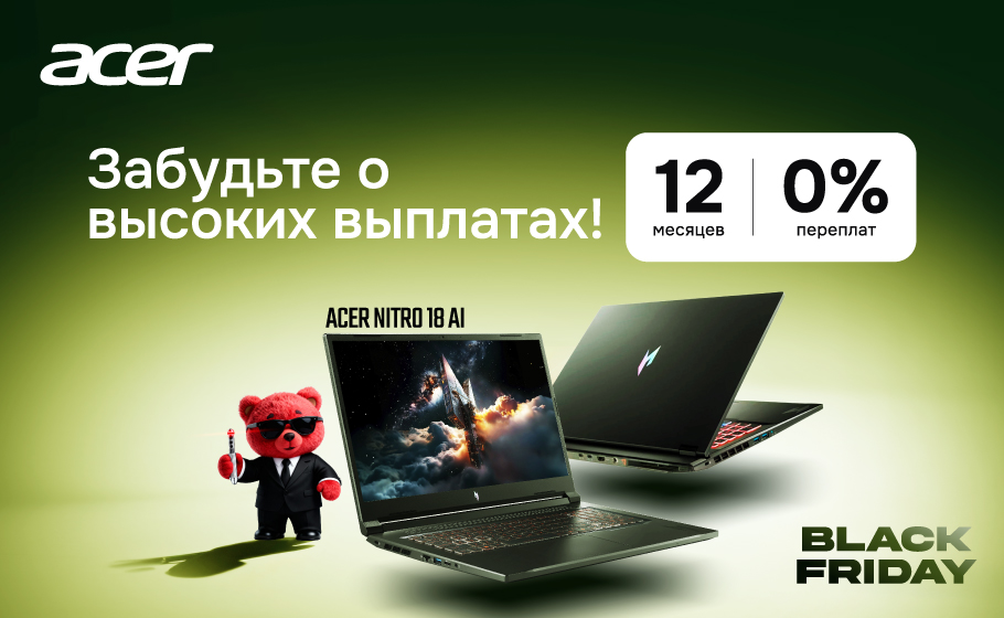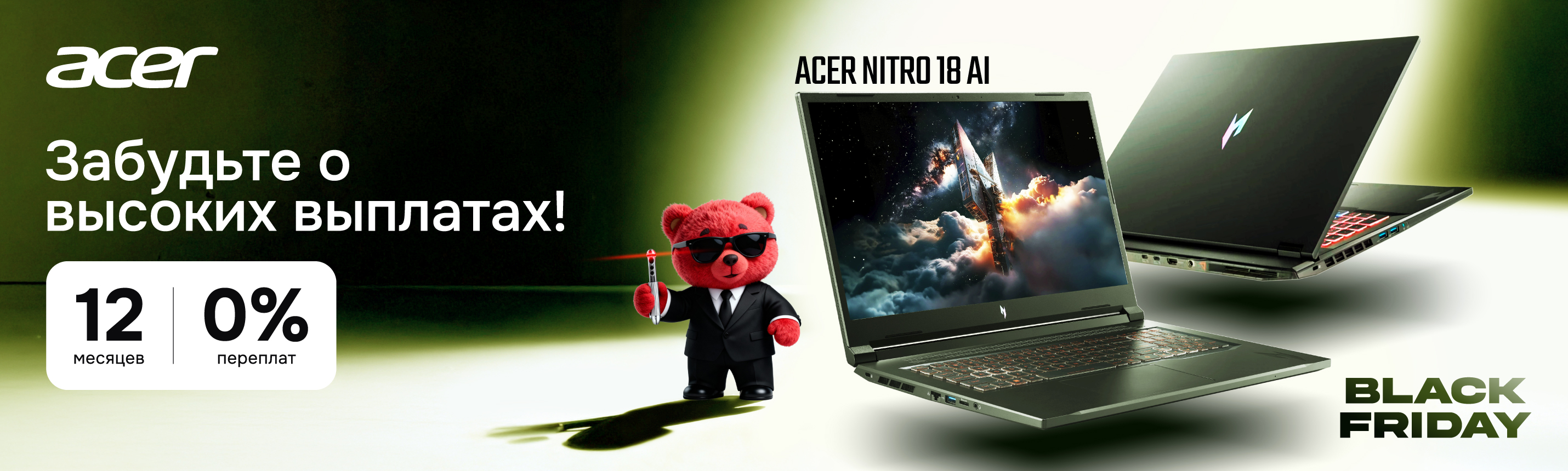 Забудьте о высоких выплатах! Ноутбуки Acer Nitro в рассрочку на 12 месяцев под 0%
