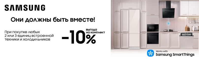 Выберите от двух и более единиц встроенной техники Samsung и получите скидку -10% на весь заказ.