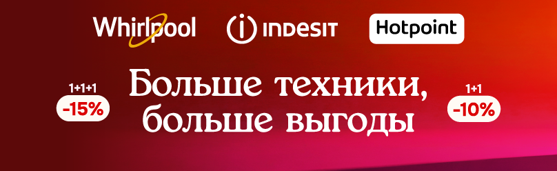 Соберите комплект из трёх единиц бытовой техники Whirlpool, Indesit или Hotpoint и получите скидку 15% на весь заказ, а при выборе двух позиций — 10% скидки!