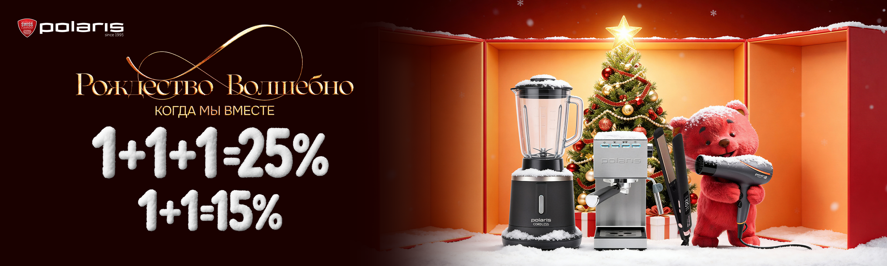 Соберите комплект из трёх товаров Polaris и получите скидку 25% на весь заказ, а при выборе двух позиций — 15% скидки!