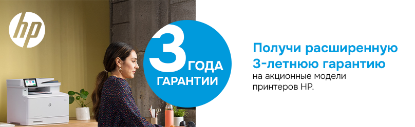 В рамках специального предложения действует расширенная гарантия сроком до 3 лет на принтеры HP. Гарантия предоставляет дополнительную защиту вашего устройства и спокойствие в повседневной работе — дома или в офисе.