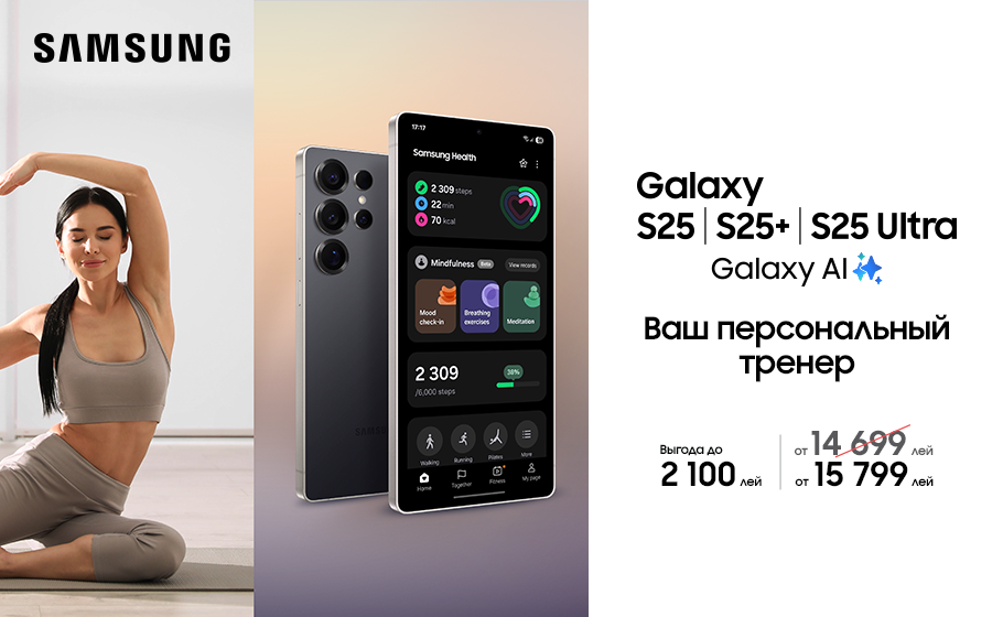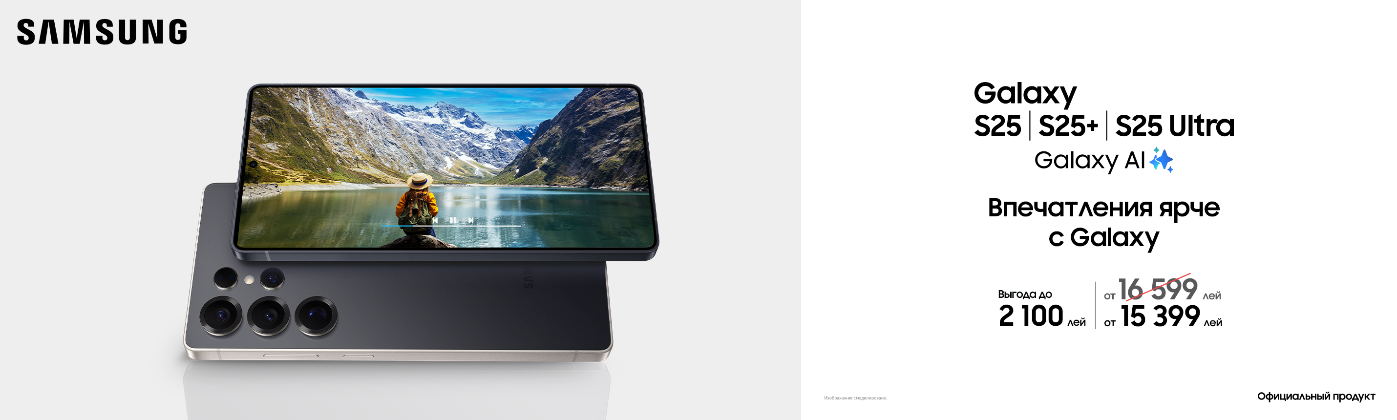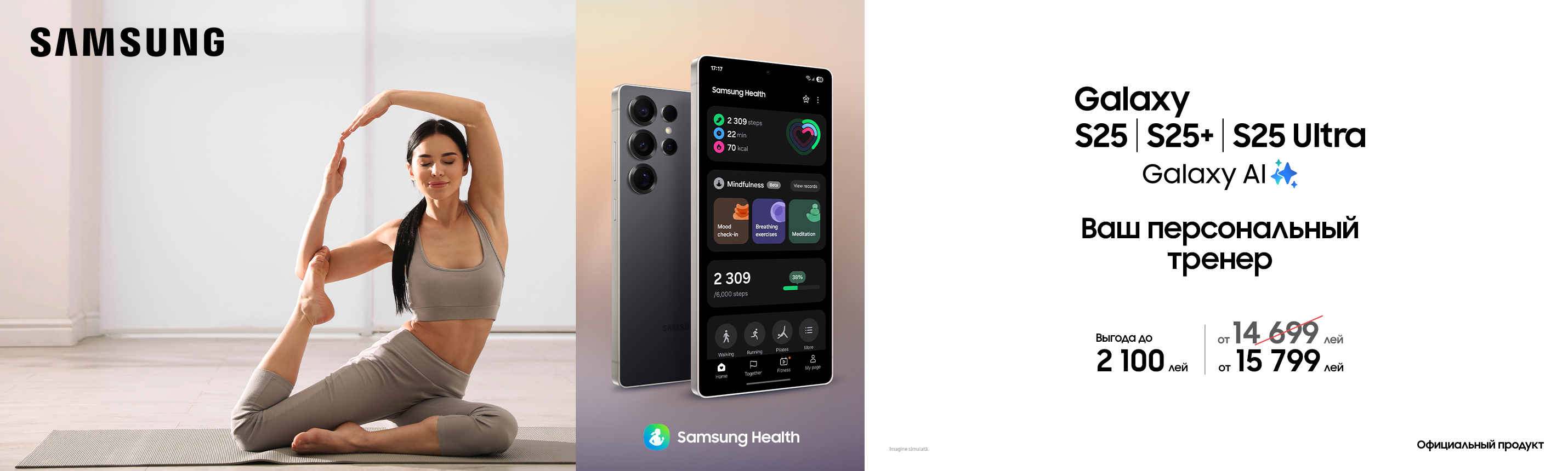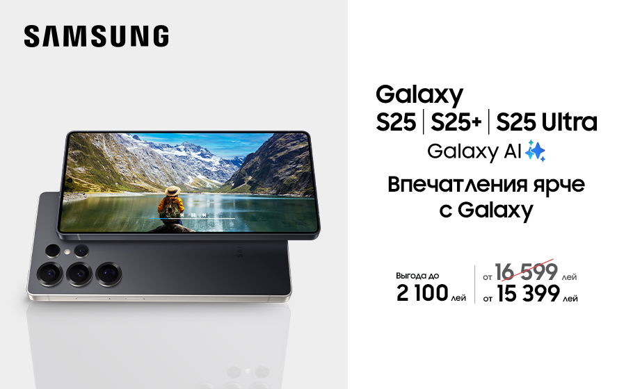 Покупайте модели смартфонов Galaxy S25 и получайте подарочные сертификаты номиналом от 800 до 1500 лей на покупку дополнительных гаджетов и аксессуаров Samsung.